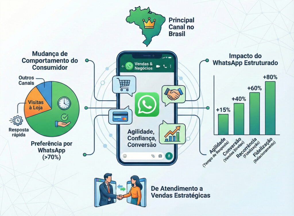 Com esses pilares, o WhatsApp deixa de ser apenas um aplicativo de mensagens e passa a operar como um canal de vendas estruturado e escalável.