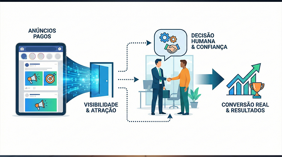 O crescimento sustentável em 2026 não acontece apenas com mais investimento em anúncios. Ele acontece quando empresas entendem que a decisão de compra é humana, contextual e relacional.