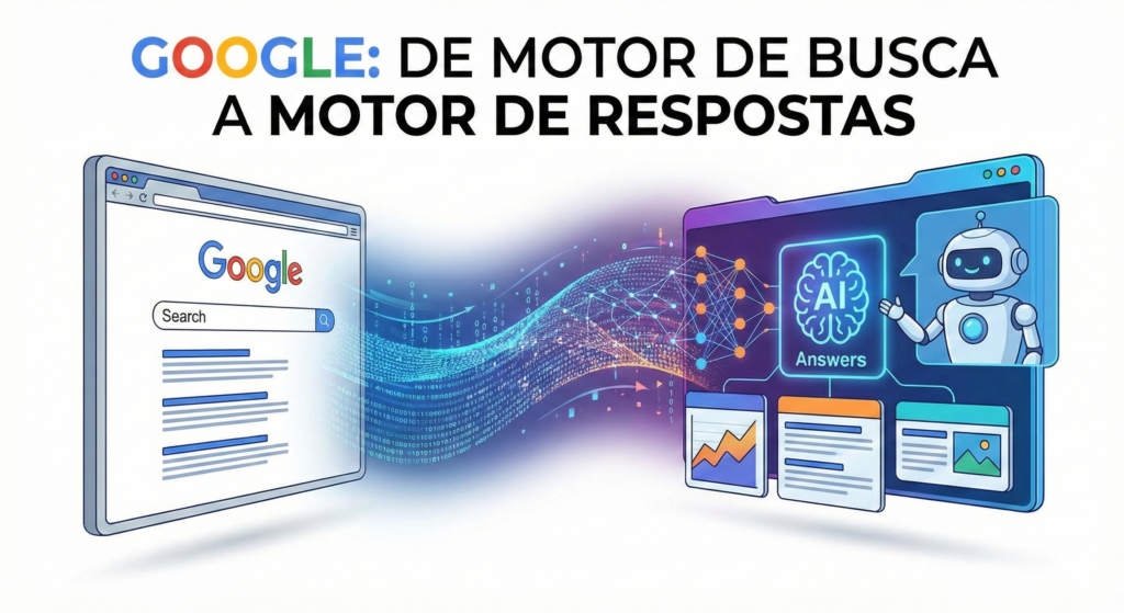 Nos últimos dois anos, o Google deixou de ser apenas um mecanismo de busca para se tornar um sistema de respostas orientado por inteligência artificial. A mudança não é visual. É estrutural.
