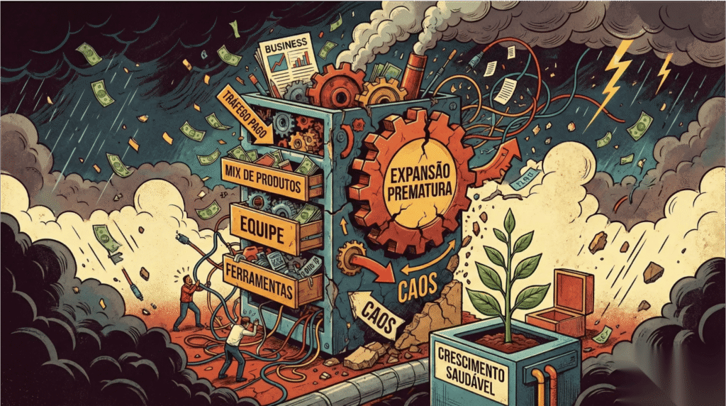 A expansão prematura aumenta complexidade. E complexidade sem estrutura gera caos.