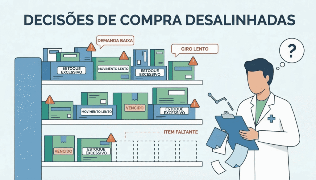 Sem visibilidade sobre essas variações de demanda, a farmácia corre o risco de comprar produtos que não acompanham o ritmo real do mercado.