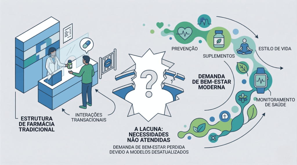 Durante décadas, o varejo de saúde operou com uma lógica simples: o paciente chega com sintoma, o estabelecimento entrega o medicamento, a venda acontece. Essa lógica ainda existe. Mas ela não é mais a única lógica de consumo que o balcão precisa atender.