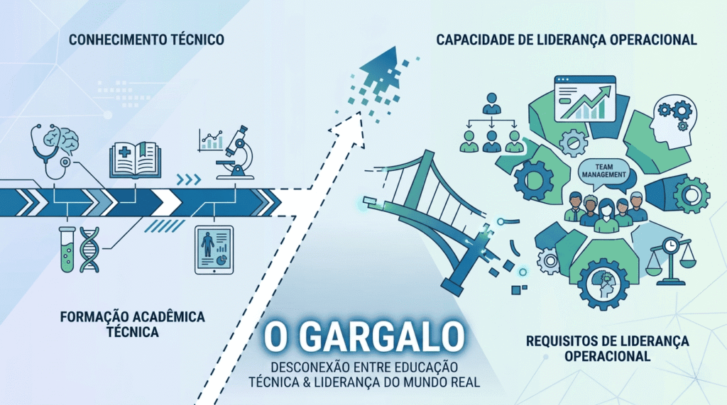 Essas competências não são ensinadas na maioria dos cursos de farmácia. Elas precisam ser desenvolvidas depois, de forma deliberada, por um profissional que reconhece que a excelência clínica e a liderança de operação são disciplinas diferentes que se complementam.